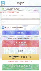 ログイン画面が表示されたら「インスピ会員登録」のボタンをタップします。