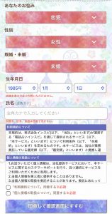 その後悩みや性別、既婚かどうかなどの情報を入力します。生年月日や氏名などの情報も入力しましょう。