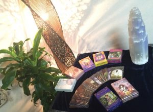 桂子先生が操るレムリアンタロットとは、従来のタロットに古代文明レムリアの女神のモチーフなどを取り入れたもの。鑑定では、このタロットを使って、相談者が自分らしくのびのびと生きられるように導いてくださいます。