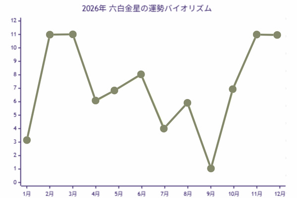 2026年立春以降、六白金星の方は北の坎宮(かんきゅう)に入るのですが、暗剣殺と歳破がセットでついてくるため、無理に動かず「守り」を極める年となります。北の方角は、もともと静かに過ごすのが吉といわれる方位。ここに突発的なトラブルに直面しやすい運気を表す暗剣殺と歳破がついてくるので、今年は用心に用心を重ねた方がいい年となります。