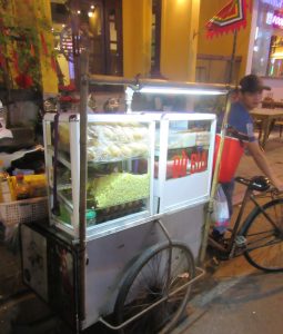 地方によってバインミーは様々ですが、道端で出会うバインミーもベトナムの魅力の一つ。自転車のうしろにつけられたような簡易的な屋台で、ガスコンロで具材を炒めて、バターでジュっと焼き付けるバインミーは絶品です。