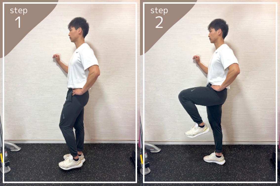 もも上げは、足の付け根の筋肉をほぐしてくれる筋トレです。反り腰や腰痛解消・予防に効果があります。