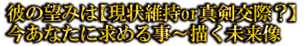 【女性専用メニュー】彼は今のところ、あなたと現状維持で付き合っていきたい? それとも真剣交際を望んでいる……? 今、彼があなたに求めている事、そして描くビジョンまで、タロットが示すままに真実をお伝えします。