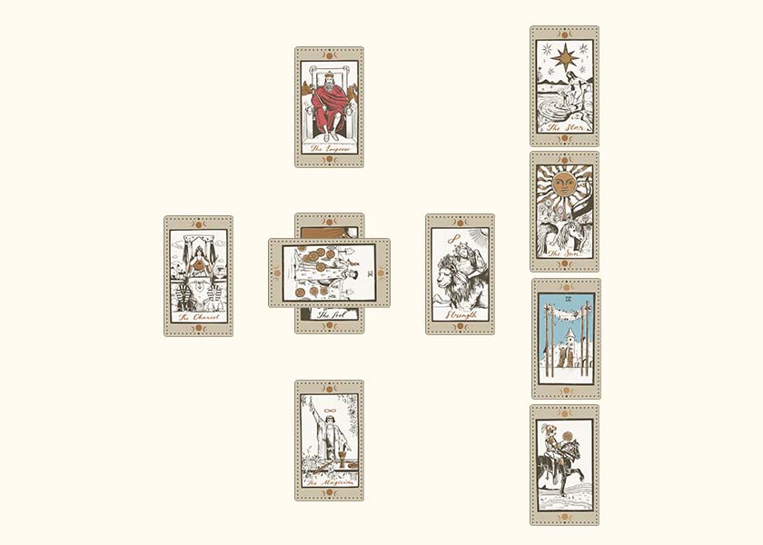 タロットカードのスプレッド(並び)には、位置によってそれぞれのカードが持つ意味があります。占いたい内容に適したスプレッドを用いることで、あなたが知りたい答えを明確に見抜くことができます。