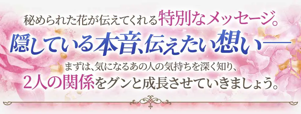 同じ花壇で咲く花のようなあなたとあの人。運命の巡り合わせによって生まれた、奇跡のような出会い。決して偶然ではない、2人だけの宿縁について超解説していきます。この鑑定後、あなたとあの人の100年の愛が満開に咲き誇ることでしょう。