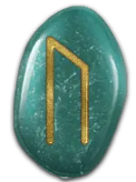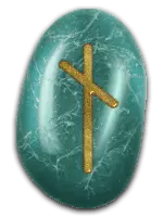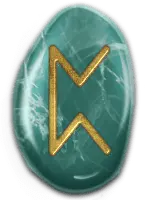| 「ダイス」の象徴。偶然や自分の予測ができない状況を表す。占いでは偶然やハプニング、吉凶を天に任せるときに出る。このルーンをつかさどる北欧神話のノルンは、ルーンを刻んで人の運命を決定する3姉妹の女神でで、神に真意をたずねる占いそのものを表すルーンとも言える。 | ||