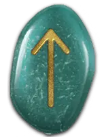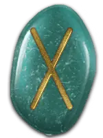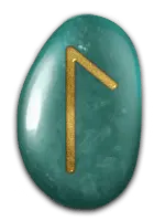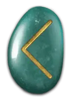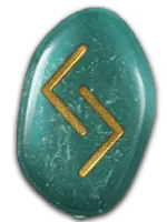 | 「愛情」の象徴。燃えるような愛情や思いやりを表す。恋人同士の愛から、親子愛、友愛、博愛まで、すべての愛が含まる。与えるだけ、もらうだけの一方的な愛ではなく、お互いへの信頼と分かち合いの精神が根本にある。生け髪をささげて神から授かる才能も、このルーンに含まれる。 | ||