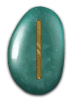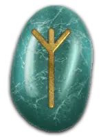 | 「死・再生」の象徴。「復活」や「再生」への望みを表す。常緑の針葉樹イチイの木を表すルーン。人知を超えた力や死と再生を象徴する木で、この世とあの世をへだてる境界線の印として、洋の東西を問わず墓地や聖地に植えられている。 | ||