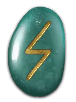 | 「巨人・トゲ」の象徴。茨の道、進みにくい状況を表す。巨人や魔物を表すルーン。これ以上進むと痛みを味わうという警告。古来、痛みを与えるルーンとして使われており、巨人は、異界の門の番人です。どんな物事であっても、境界線を越えようとするならば巨人と相対しなければならない。心に突き刺さった棘のようなトラウマを表す場合も。 | ||