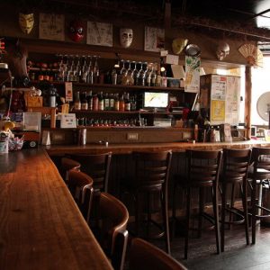 自然堂は毎日15時から翌朝5時まで営業しており、早い時間でも遅い時間でも美味しいお酒とお料理が楽しめるとして地元で愛されています。古今東西の様々な雑貨がちりばめられたウッド調の店内は不思議な魅力に溢れており、訪れた人を非日常へと誘いますよ。