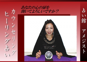 | 料金 | 【カウンセリングヒーリング占い】30分9,000円 【相性占い】30分6,000円(1組3種まで) 【手相占い】10分3,000円※30分以降10分毎1,000円増 【占い放題のみ】30分6,000円 【悩み相談のみ】30分6,000円 【宿命鑑定】11,000円 【結婚相談】21,000円 (二人の宿命鑑定つき) ※30分以降10分毎1,000円増※すべて税別価格 ほか |