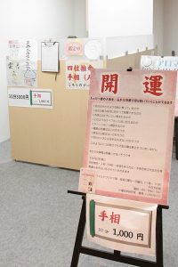 10分1,000円というリーズナブルなお値段も、くぅ先生が人気を集める理由のひとつ。手の届きやすい料金と話しやすいお人柄のおかげで、先生のブースはいつも「ちょっと話を聞いてほしい」という人でにぎわっています。ニコニコとした表情で手相を読み解いてくださるので、占いが初めての人もすぐにリラックスできるはず。